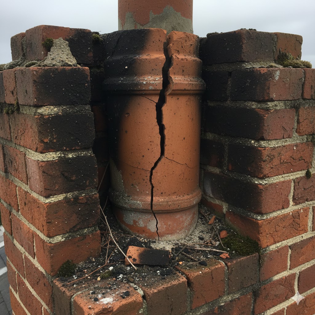 The Fix: Relining with a stainless steel insert is often the best solution—durable, code-compliant, and long-lasting. Severe cracks may require a full inspection and replacement.